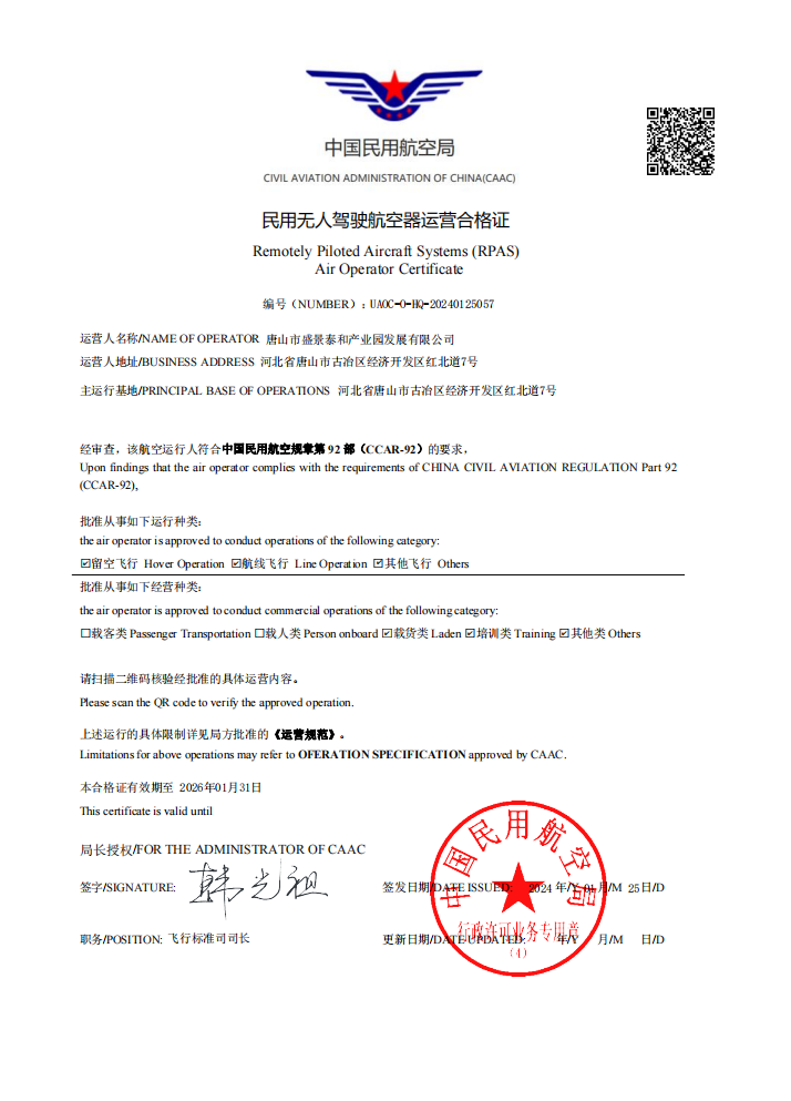 我集團(tuán)獲民用無(wú)人駕駛航空器運(yùn)營(yíng)合格證